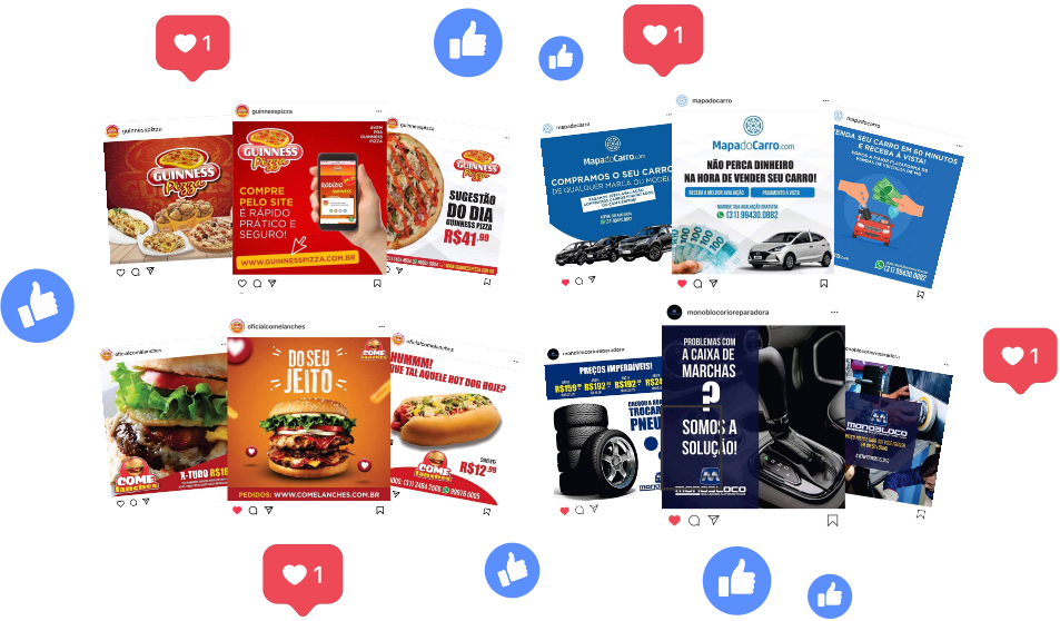 Aqui você pode comprar criativos personalizados para a sua empresa usar como conteúdo ou propaganda do seu negócio, é só nos passar o briefing e entregamos para você nos tamanhos corretos para uso.